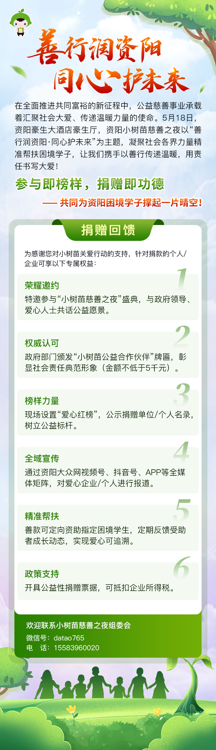 爱心人士彭玉竹为资阳市2025年“小树苗”慈善之夜捐款600..