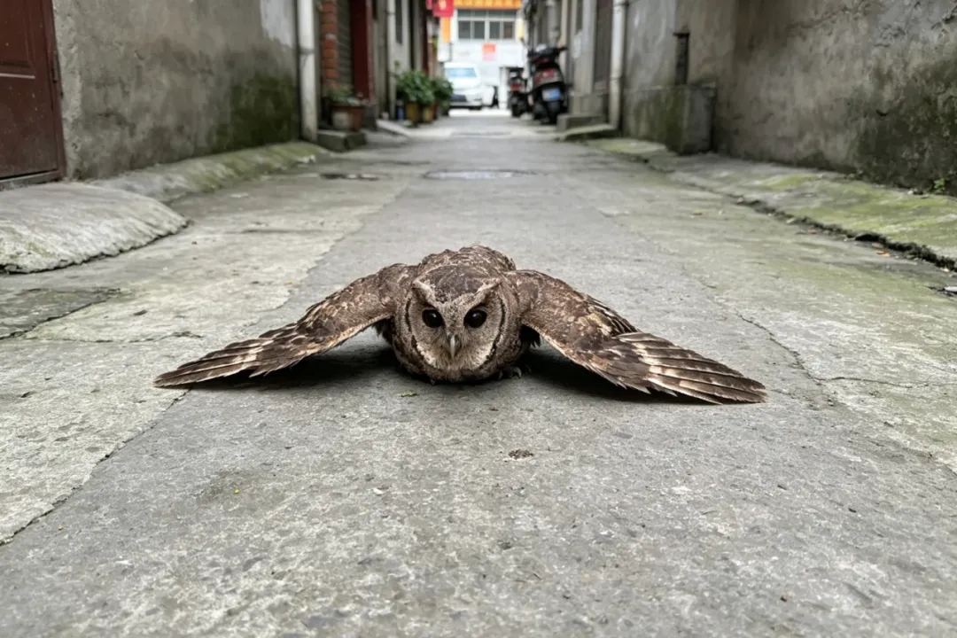 街头惊现“国宝”! 安岳警民共助呆萌领角鸮回家!